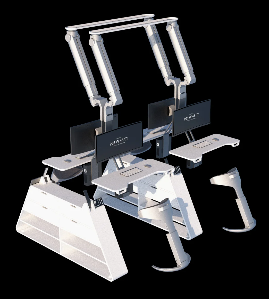 As part of the tower’s integrated design approach, the furniture was also engineered to fit the space precisely. Due to the recently formulated risks which prolonged seating poses on health of modern workers, it is crucial to equip the space with ergonomic, sit-stand transformable furniture. The desks are hanging from the ceiling on gas-lift arms which allow for an easy individual adjustment of their height and rotation/position, as well as quick office layout/seats quantity reconfiguration based on minute needs of a tenant.
